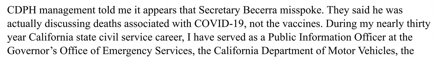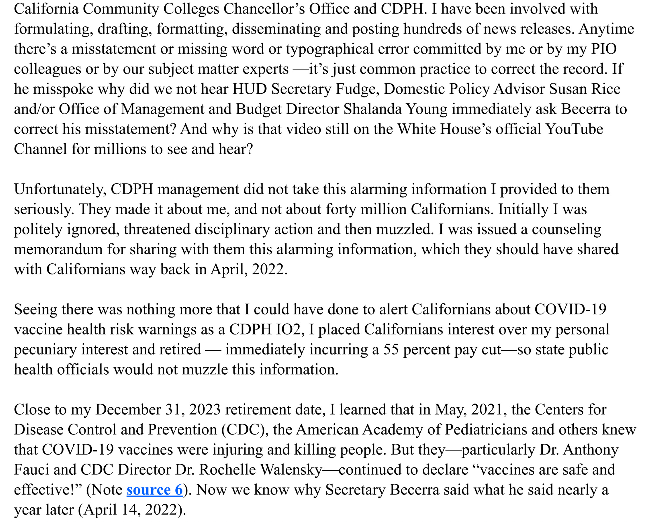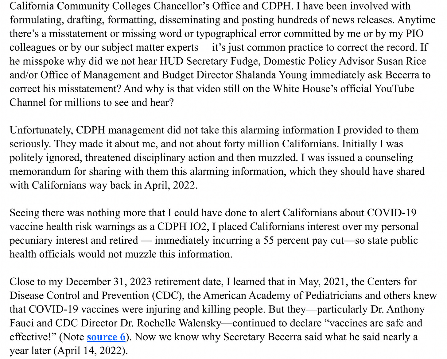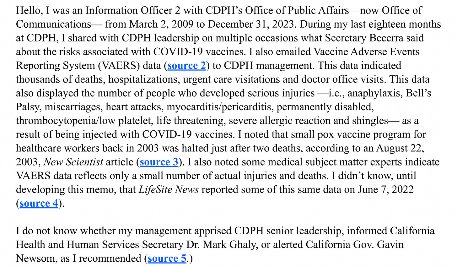 Read the detailed memo from Former California Department of Public Health Information Officer