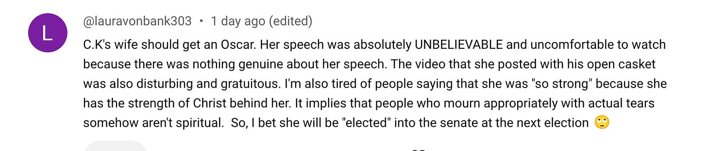 👉 She promoted the Turning Point organization more than once and urger people to sign up for the conferences? Seemed a little strange to be doing that so soon