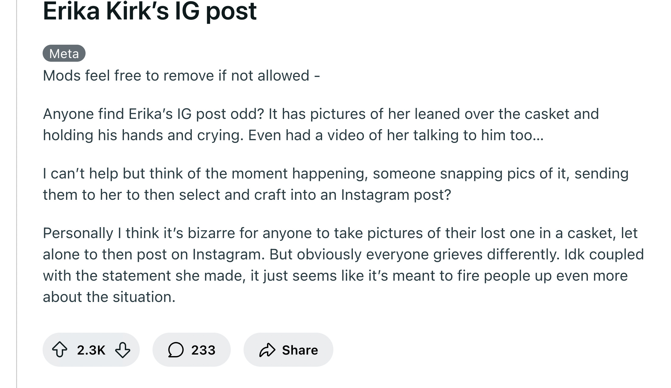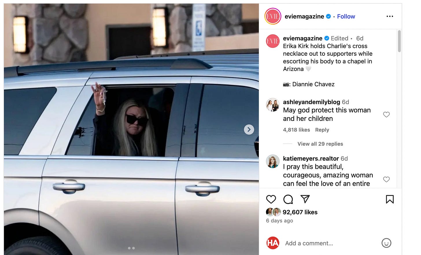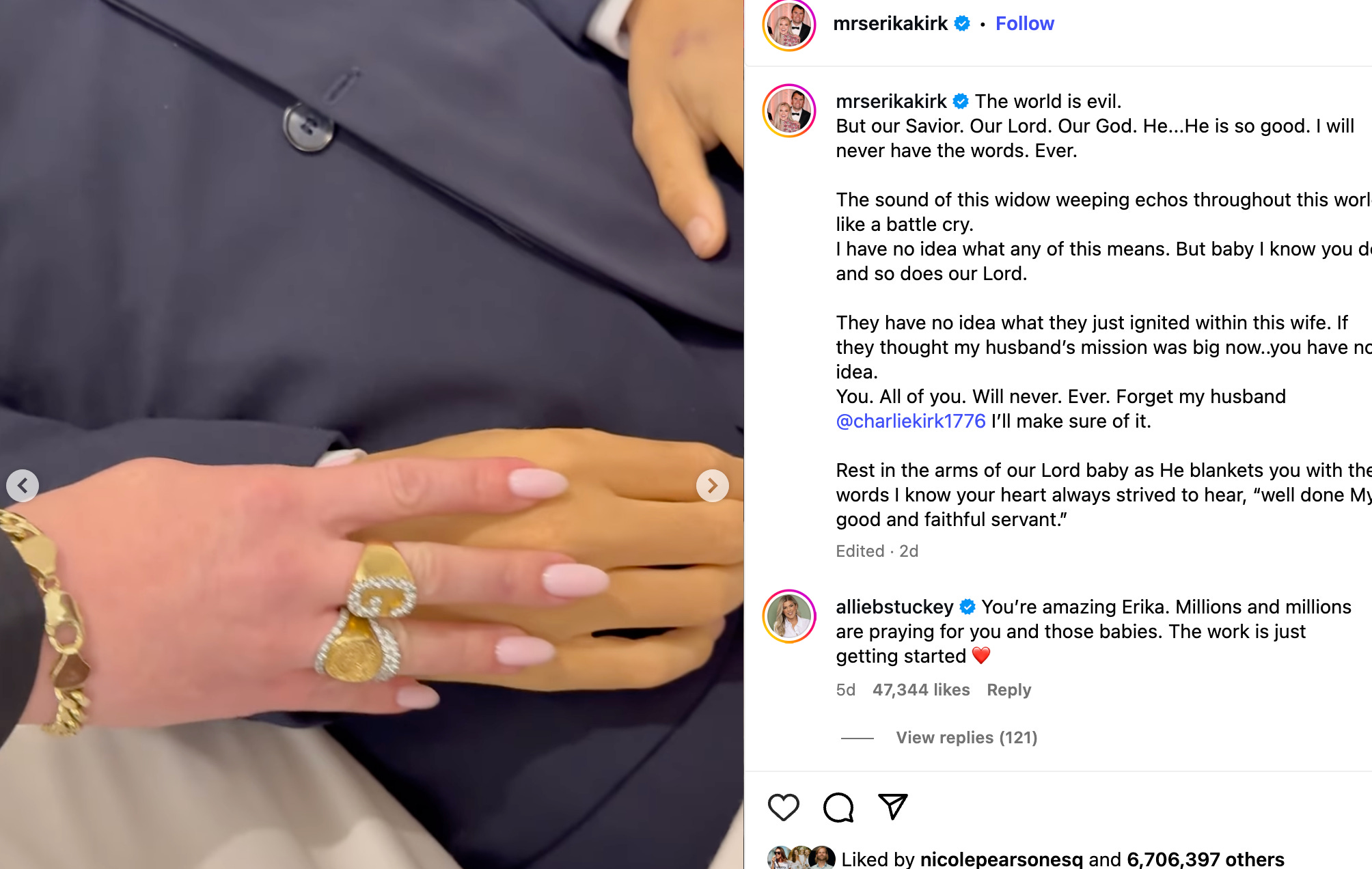 In the pursuit of gathering clues to solve this mystery of the Charlie Kirk incident, we’re looking at Erika Kirk’s Instagram page to see what she has posted, when and why.