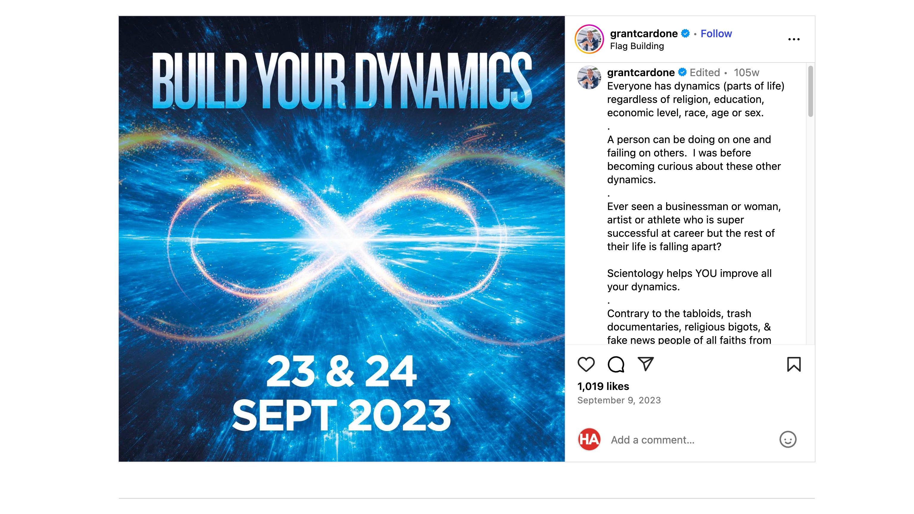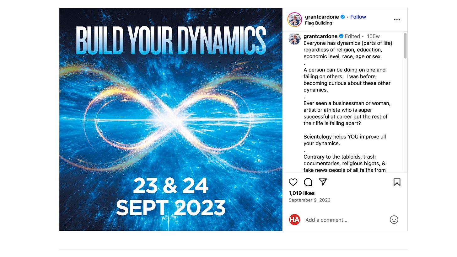 Elena’s husband, Grant, touted the benefits of Scientology on his IG page here, saying the religion was misunderstood: