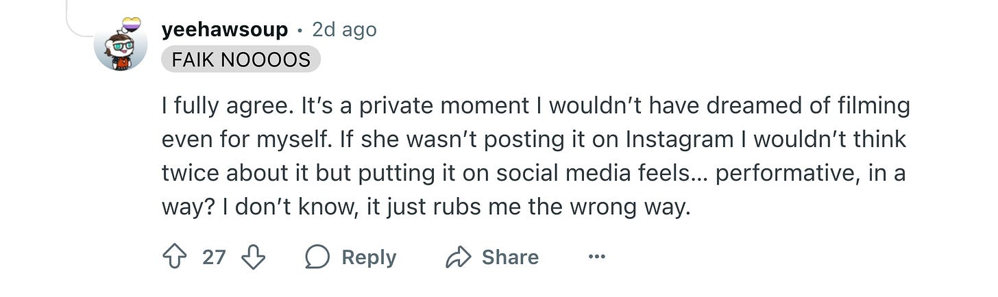 If Erika is so private, why does her Instagram have this disconnect of sharing really bizarre, intimate details of her life even though she calls herself a private person?