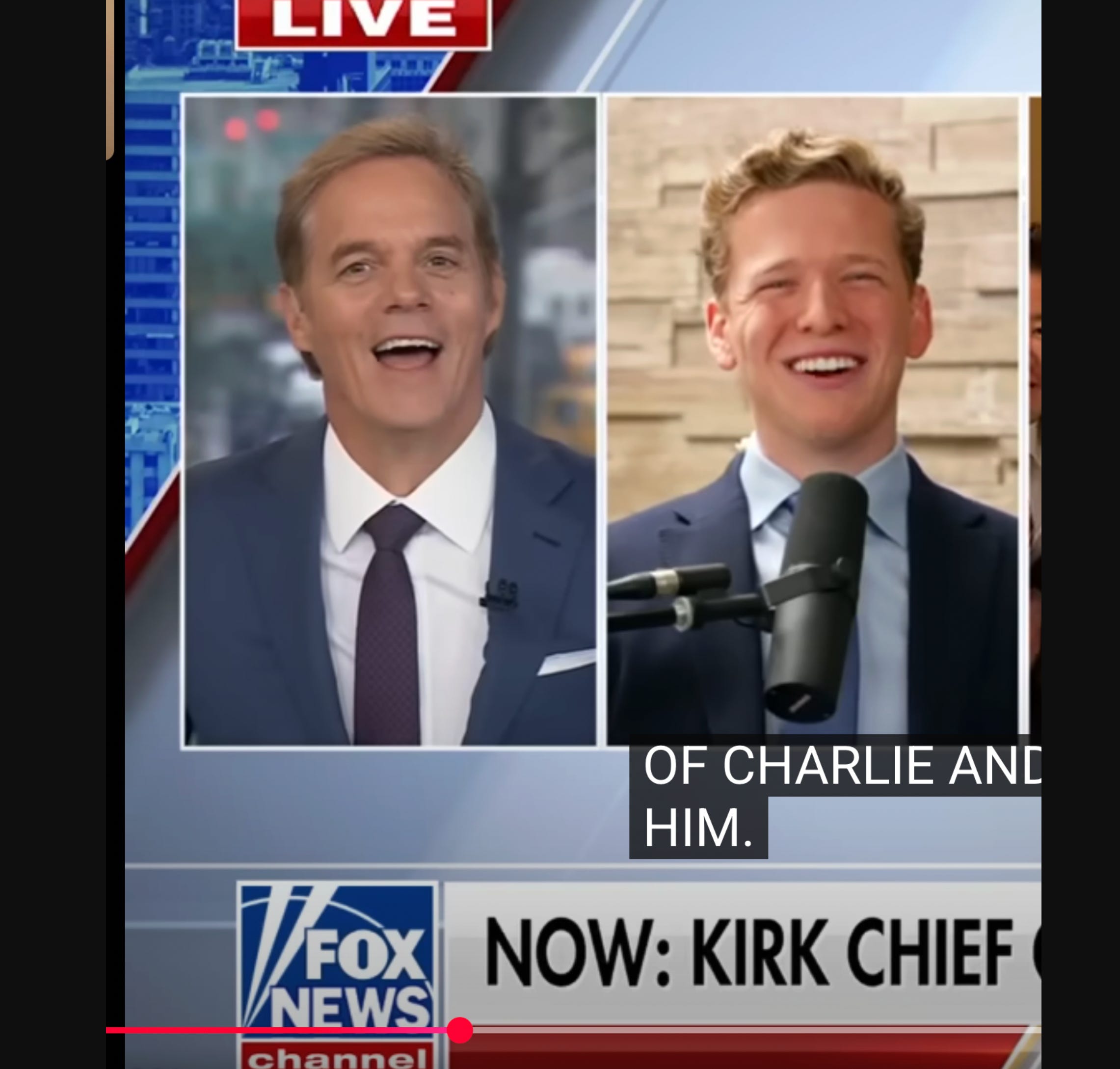 KIRK’S CHIEF OF STAFF MIKEY MCCOY FIGHTING BACK THE TEARS LESS THAN A WEEK AFTER THE FAKE SHOOTING. He also promotes “Charlie’s New Book” 🤣