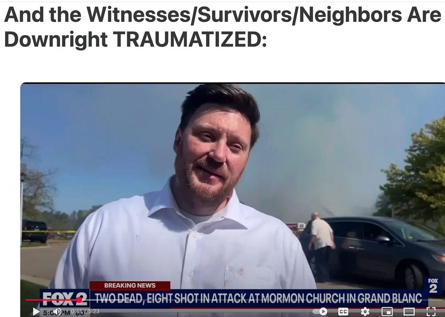 This guy, Creighton Baird (if that’s even his real name) happens to live in the CIA-hotbed called Orem, UT — and he literally is a REALITY TV SHOW ACTOR. Here, he made a video saying he was an “eye witness” 😆