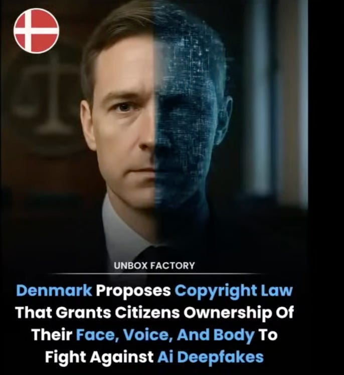 “In a world where artificial intelligence can replicate a person’s voice or face in seconds, Denmark is stepping forward with a groundbreaking proposal: a copyright law that grants every citizen ownership of their own likeness.