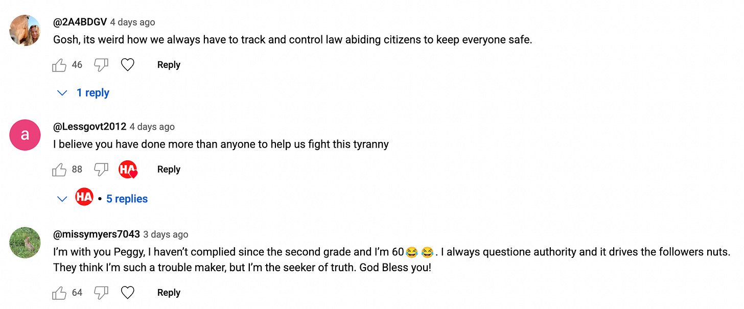 She wrote to me: "Hi Peggy, I'm so glad I watched your video on the REAL ID. I moved to South Carolina (North Myrtle Beach area) from New York State last year—and I have absolutely no regrets; the people here are great, and I'm 10 minutes from the beach. After watching your video, I checked my license and saw it had that star. I'm pretty sure I didn't request a REAL ID, but I got one nonetheless. I went back to the DMV and requested just a regular driver's license. You should have seen the looks on their faces—they were dumbfounded! The woman said, 'But you can get into federal buildings with this.' I replied that I don't need to visit federal buildings. She said, 'It's a lot easier to use this to fly.' I told her I haven't flown in 15 years, and besides, I have a passport I can use if needed. I had to pay the $25 fee and have a new eye test and photo taken, but I got the regular license. I think they're going to track us one way or another, but at least I'm trying to stay out of their clutches. I hope you're enjoying your new home in Florida—I left what family and friends I had in New York and love my new location. Thanks again."