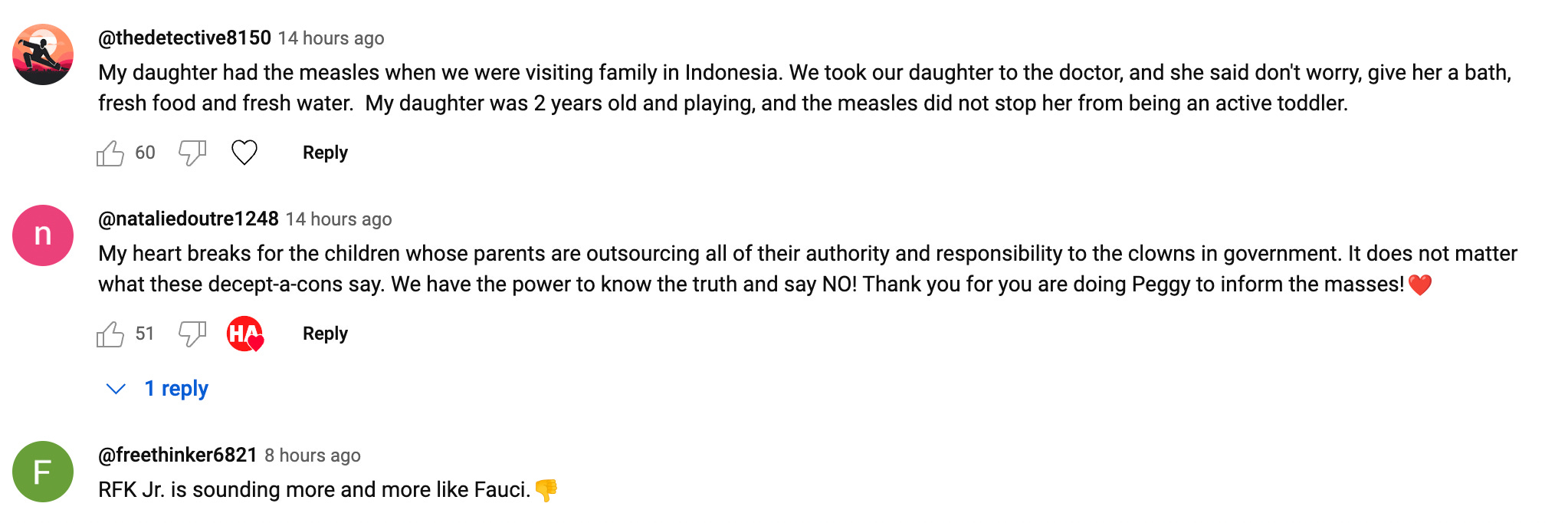 So when Junior talks about our "shared responsibility" and how vaccines "contribute to community immunity" while claiming to respect personal choice, my alarm bells start ringing. This double-speak is exactly how people get bamboozled.