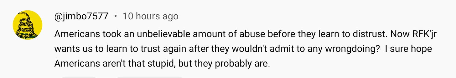 It rubs me the wrong way when RFK Jr has as his top priority “restoring trust” in the government and its regulatory agencies.