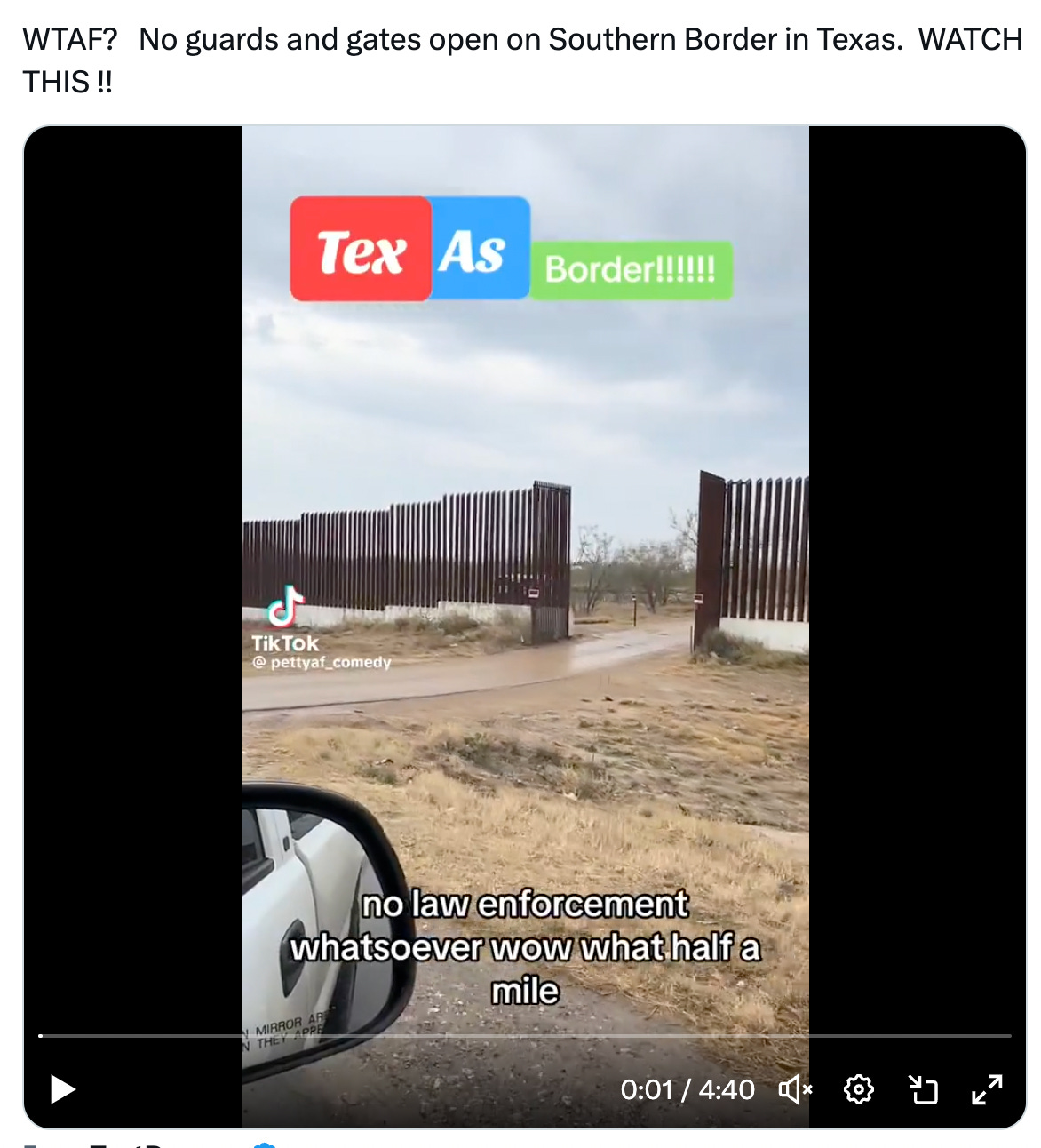 A Texas resident highlights open gates along the border, about a half mile from Eagle Pass. (Note: this clip contains profanity)