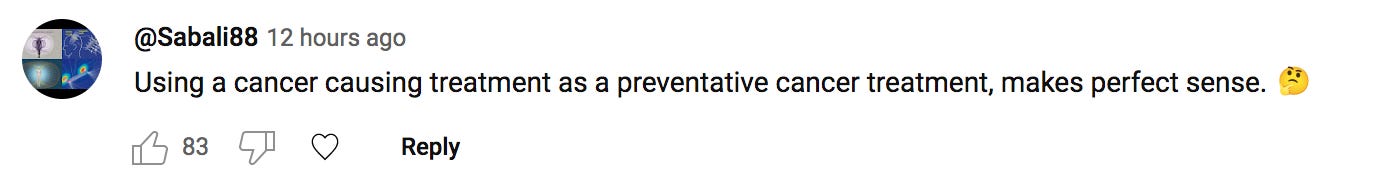 Encourages future uptake of cancer vaxx esp by the young which they will push as well as bogus tests for cancer which will be pre-determined (+).