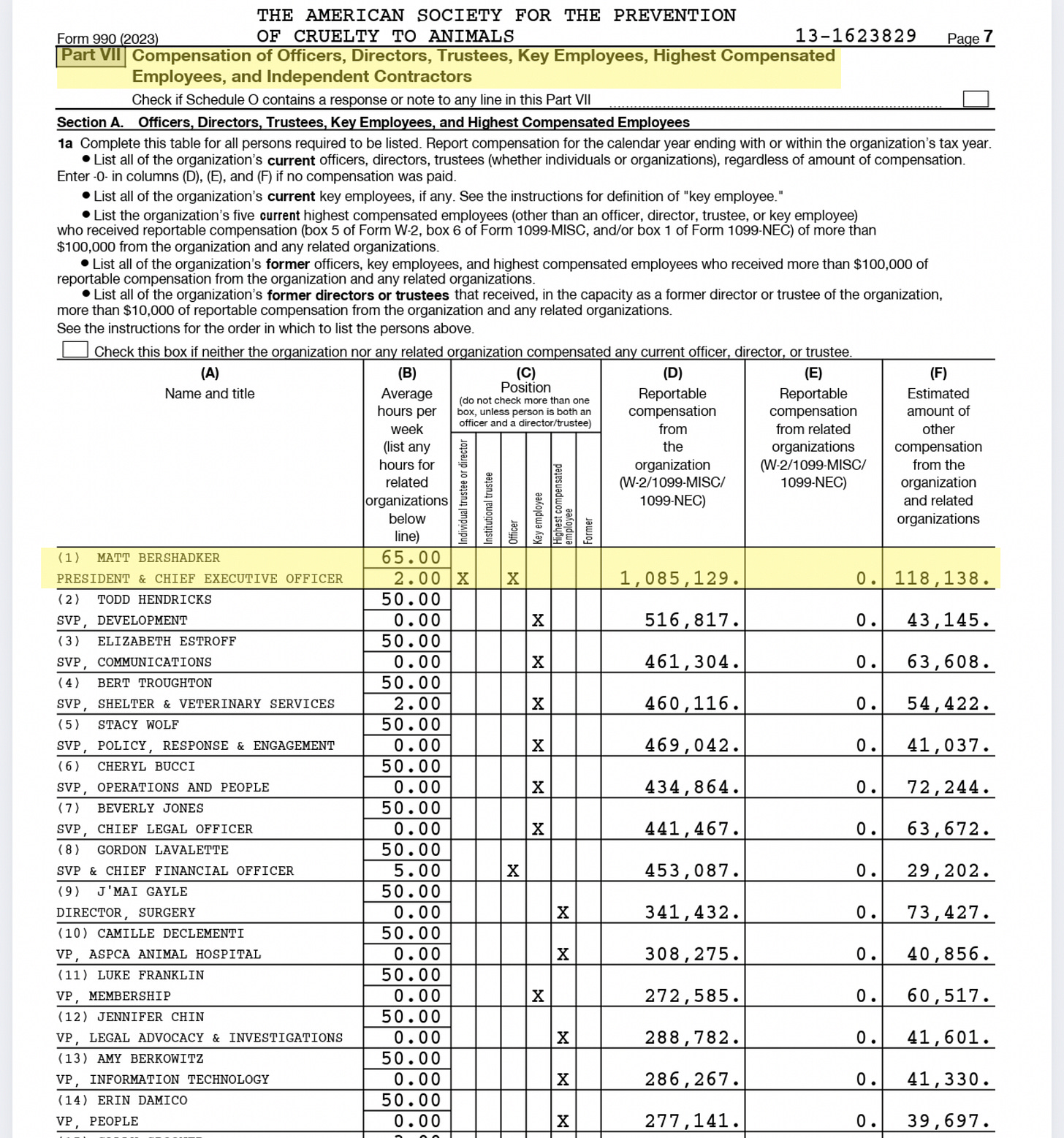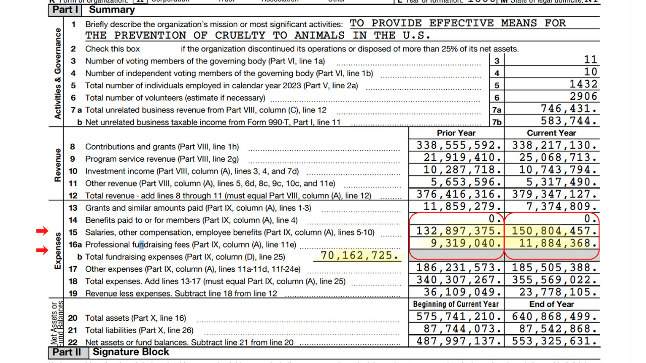This tells you how much they spend asking for more money instead of actually helping people (or animals, or whoever they claim to help).Then, keep going until you see Part IV “Compensation”. Take a look at how many dollars you’ve donated end up in the executive’s pockets. Yes, that is over a million dollars for the ASPCA president and CEO.