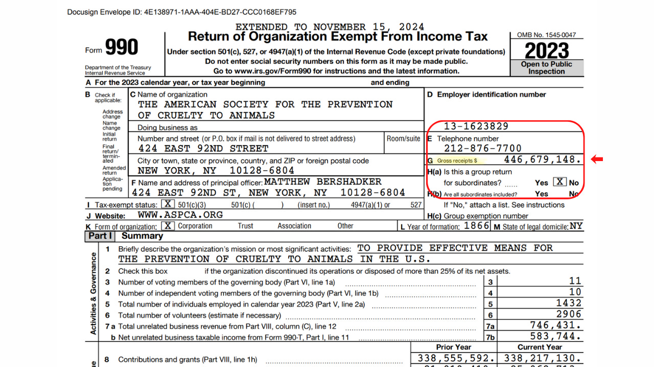 Every nonprofit has to file this document with the IRS. It’s public record.Look at the top of the first page.