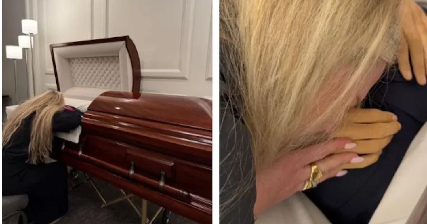 👉 Erika’s strange behavior before and after the incident, including speaking publicly within 48 hours, and showing footage of her at the coffin, which many said was creepy to have it filmed and shared on social media (not to mention what many are calling mannequin hands)