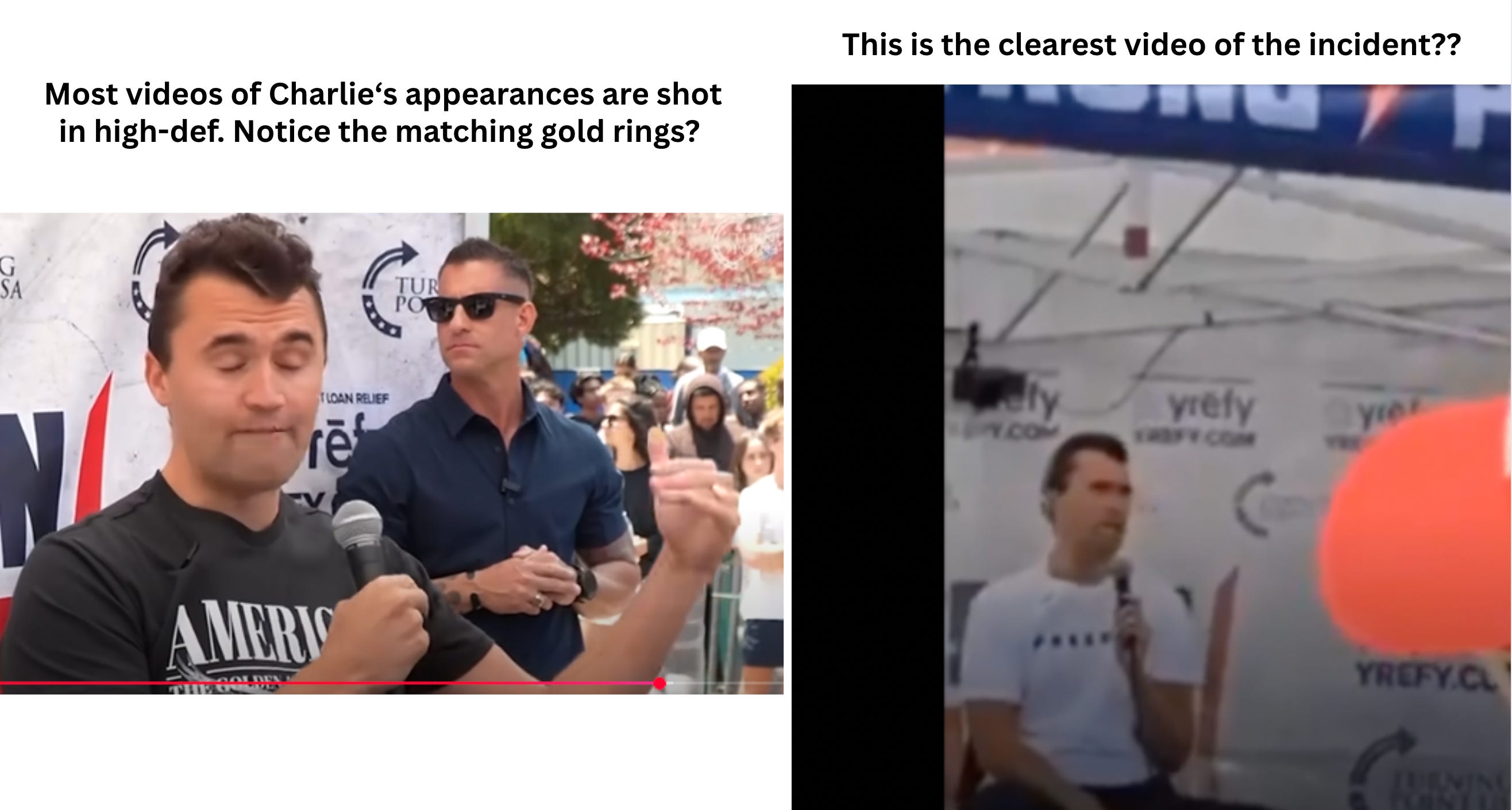 Most video footage of Charlie is pretty clear, with his camera crew taking high-definition footage to upload to Charlie’s social media… so why at this event do we only see grainy footage of the incident?