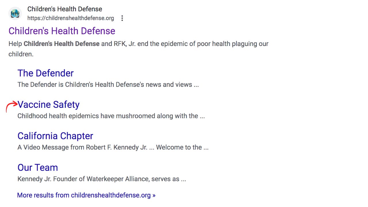 But don’t take my word for it, visit RFK Jr’s website all about V safety (an oxymoron because poison can never be safe!) and see for yourself. I promise you don’t even need to go digging for it, they have a short cut for that very important section as soon as you search for Children’s Health Defense.