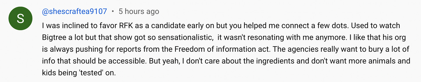 By contrast, take a look at the email exchange below, with a Healthy American that was able to engage in a cordial conversation. I want to say that I appreciate the emotional maturity that has gone on in this email exchange. The writer is not a person that just sent a rude comment and unsubscribed. She genuinely wanted to understand where I was coming from because she really liked RFK and felt that I was targeting him unfairly.